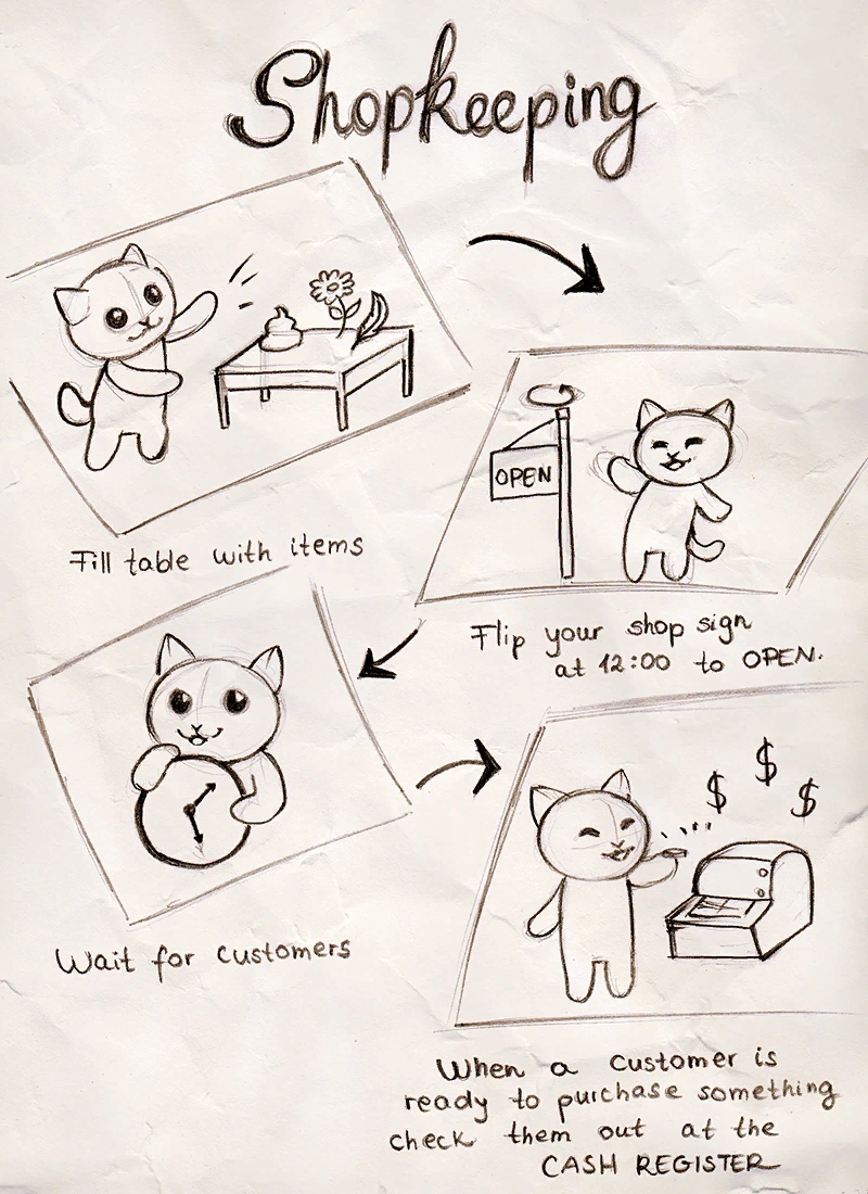 Shopkeeping is a core element of gameplay, as it is the primary way to earn coins. Almost anything in the game can be sold.